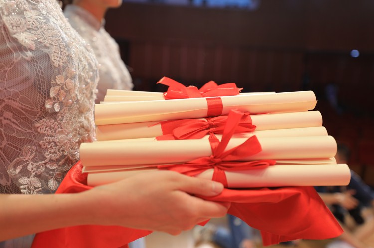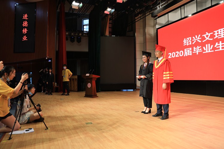 6月15日下午1点,学院2020届毕业生学士学位授予仪式在国际文化交流中心报告厅隆重举行。这是学院为2020届获得学士学位的毕业生们送上的一份特别礼物。仪式持续近一天半,长达10个小时内,经理沈红卫坚持自己站台,亲自为近1400余名毕业生逐一颁发学位证书、扶正流苏并合影留念。一位位毕业生头戴整齐的毕业帽,换上统一的学士服,整齐有序上台,与经理亲切地握手、合影,完成庄严的学位授予仪式。各分院和职能部门负责人,教师、辅导员代表等参加仪式。