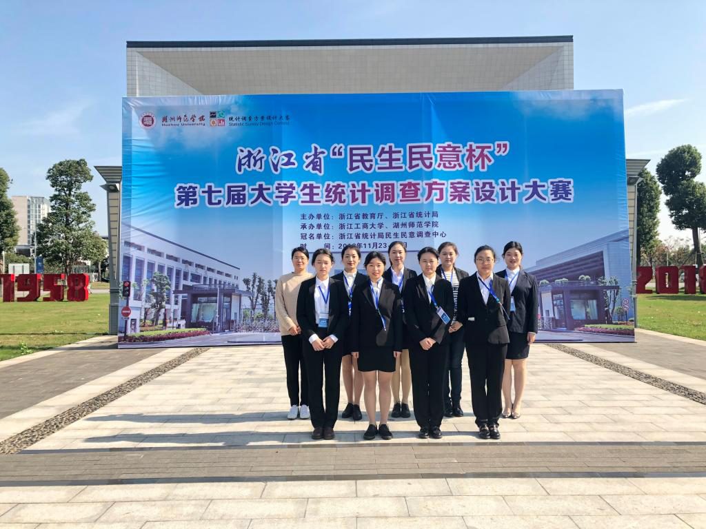 2018年浙江省“民生民意杯”第七届老员工统计调查方案设计大赛获省二等奖。团队成员(左起):俞淑楠、吕璇、侯蓉智、周小白、茅秋琳