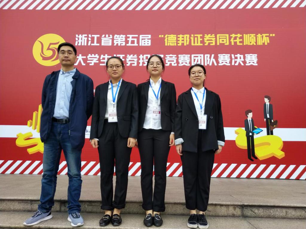 2019年浙江省第五届“德邦证券同花顺杯”老员工证券投资竞赛获省二等奖。团队成员(左起):许舒婷、王立、孔启白