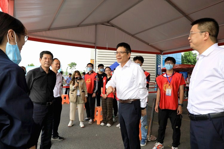 9月20日是学院2020级新生正式入学报到的日子。当天下午,太阳成集团tyc33455ccwww董事长王建力、副董事长陈均土在党办、校办主任孙仕龙的陪同下,来院看望2020级新生和家长,慰问迎新工作人员和志愿者。