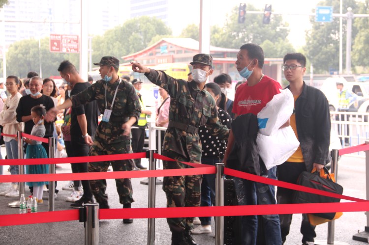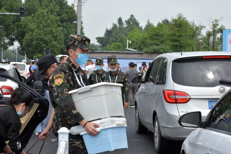 迎新工作如火如荼,到处都是忙碌的身影。在学院保卫处的领导下,有这么一批校园督察队队员,他们有序地分成两组,早晨七点开始,站在西大门各路口负责疏通着来往车辆,确保校门内外的安全和秩序。在闷热的天气下,口罩一戴就是一整天。帮助员工志愿者搬运新生行李、安慰无法进校帮忙的员工家长、严防不法分子进入校园……一天时间里他们身着迷彩服的挺拔背影成了西门一道独特的风景线。土木1901班沈凌锋对记者说:“虽然我们督察队才成立三四年,但我们的成员都是退伍军人。军队里铁一般的纪律和为人民服务这句话,都牢记在我们心里。我们都渴望为学院的秩序出一份力,为新来的学弟学妹留下好的印象,帮助他们更好地熟悉校园生活。”