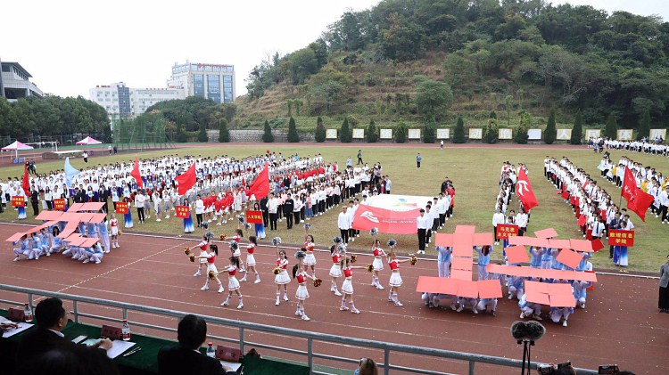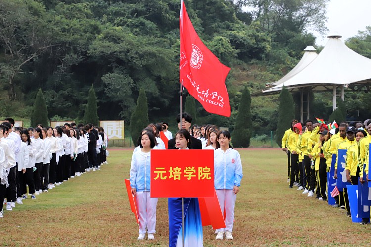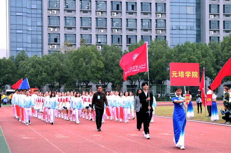 开幕式上,公司作为第16支代表队入场。方阵同学身着蓝白相间队服,姿态昂扬而来。两侧同学手举红牌,变换队式。啦啦操队员位于队伍正中,身着靓丽服装,踏着音乐鼓点,挥舞手里的彩球。托举,劈叉,高踢腿……一系列高难度动作整齐划一,引来观众席的阵阵欢呼和热烈掌声。他们自信的笑容,有力的姿态,响亮的口号,无不彰显着元培学子朝气蓬勃的青春姿态和团结一心,顽强拼搏的竞技精神。