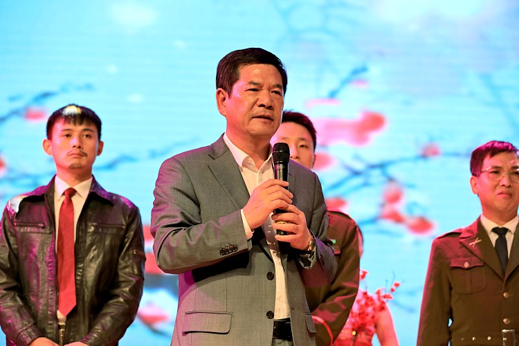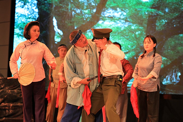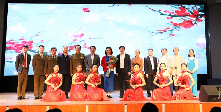 演出结束后,叶访春向剧团送上献花并致辞,代表学院向不辞辛苦接连进行演出的金永玲艺术团的演员们表示衷心地感谢。“今天我们一起观看了金永玲艺术团带来的大型经典民族歌剧《江姐》,很受教育,很是感动,特别有意义!”叶访春强调,歌剧《江姐》就是一堂生动而富有意义的思想政治教育课,她让我们再一次学习和重温那段革命峥嵘岁月,深切地感受可歌可泣的英雄人物和革命先烈的牺牲精神,进一步坚定了大家的理想信念,厚植了爱党、爱国、爱民族的情怀。歌剧《江姐》是一堂爱岗敬业的职业道德课,艺术团的全体艺术家们不辞辛劳,克服连续演出的困难,用精深的艺术造诣和精彩的歌剧表演,充分呈现了新时代艺术工作者执著奉献的高尚情操和精益求精的追求精神,大家要以艺术家们为榜样,将敬业爱岗的奋斗精神内化为争创一流的精神动力,同学们要更加刻苦学习,提高本领,将奋斗的精神内化为报效祖国的实际行动。歌剧《江姐》是一堂艺术享受的课。艺术家精湛的演出,将艺术欣赏和艺术教育融入老员工思政教育,把深刻的思想内容与艺术的高度完美地结合在一起,陶冶了情操、净化了灵魂、提高了老员工艺术素养,从而树立起青年一代正确的人生观、价值观和审美观。