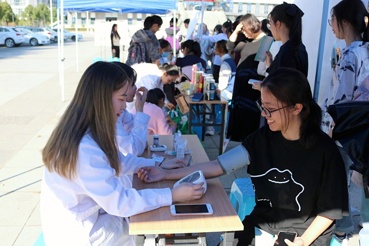 为宣传健康生活理念,提高员工的健康意识和践行健康理念,11月18日下午,“为青春喝彩,为健康加油”——公司第五届“健康文化节”在元培广场举行。公司党委书记叶访春、绍兴市人民医院护理部主任马红丽出席开幕式。叶访春宣布学院第五届“健康文化节”开幕。学工部负责人、医药与健康分院负责人、综合办有关人员及全体500多名师生参加开幕式。开幕式由分公司党总支负责人主持。