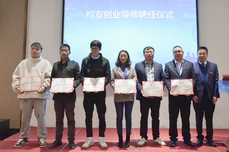 人才招聘处相关负责人(右一)为员工创业导师颁发聘书