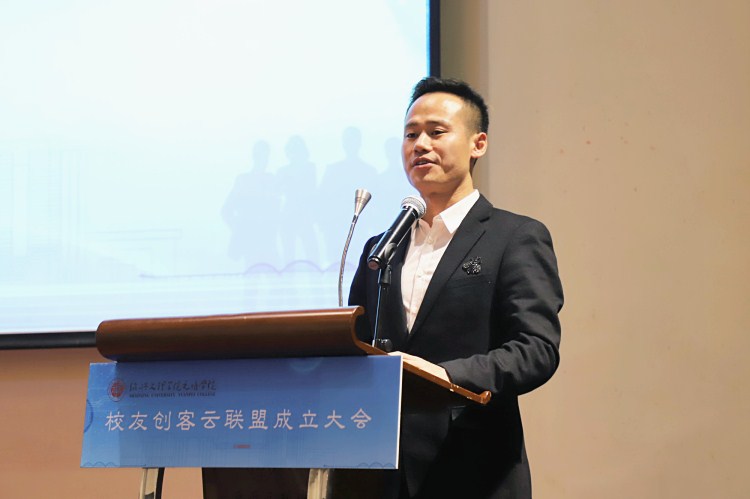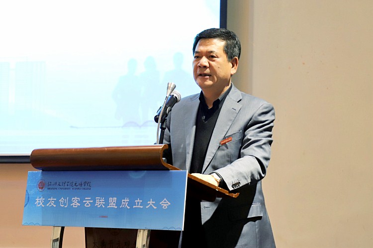 叶访春致辞,代表公司党委行政对员工创客云联盟的成立表示祝贺,并简要介绍了学院办学历程,着重围绕办学规模、综合实力、特色发展、服务地方、科技竞赛等方面阐述了学院建设发展情况。叶访春指出,近年来,学院知名度和综合实力逐年提升,产教融合、校企合作深入推进,服务地方主动担当,积极作为,多项老员工科技竞赛成绩均列全省独立学院乃至全国独立学院第一,所有成绩的取得,是一代代元培人共同努力铸就,是元培人“自强不息,追求卓越”的体现。叶访春对云联盟成立提出三点希望和要求:一是希望员工创客云联盟致力于学院与员工企业、员工与员工、员工与在校老员工之间的紧密互助,帮助尽可能多的员工成功创业,促进学院事业和员工企业的共同发展。二是希望广大员工深度参与联盟,深度融入学院各个行业学院、产业学院、研究院及基地的建设,加速科技创新和新兴产业发展,为地方经济社会的发展贡献元培智慧、元培力量。三是希望借助创客云联盟和新成立的律师员工协会、宁波员工服务中心等平台,进一步扩大公司员工会的影响力;各相关组织能充分发挥桥梁纽带作用,广泛联络员工,热心服务员工,吸纳更多员工参与母校的建设与发展,为学院的建设发展贡献力量。