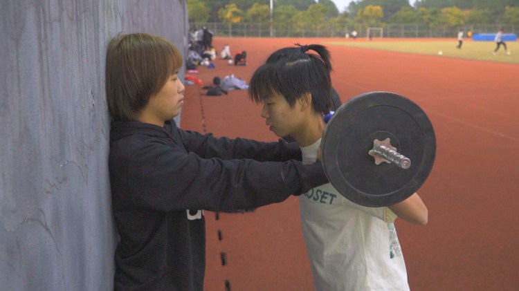 蒋丽(图右)日常训练