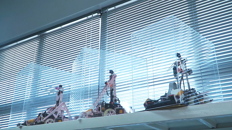 二楼到四楼的阶梯有多少节,陈庚没有数过,但这样的往返已有上百趟。早上8点,他就到了实验室,一待就是十几个小时,实验室趴一会,便起来继续改代码、修车、测试。回忆起准备比赛的时光,陈庚笑着说:“那时候只有吃饭的时候是轻松的,不用看电脑,怕把电脑弄脏,吃完饭就要开始调车。”经过数以千计次的调试,他们将误差可能性做到了最小,零件的兼容性也提高了不少,能适应多种环境的变化。
