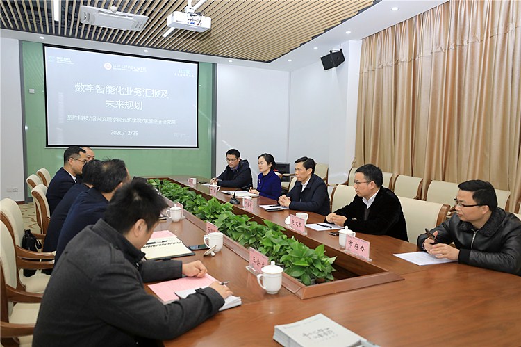 邵全卯在听取工作汇报后,对学院“小舞台大作为”的办学理念及在产学研创新生态构建中的关键作用表示高度肯定,并称赞研究院在数字化赋能东盟经济领域的研究、东盟经济与数字经济领域深度融合的良好发展态势。他希望研究院能够借助RCEP成立的契机,对现有东盟经济分析进行“视野”升级,聚焦绍兴数字化转型“痛点”,提供更多创新技术,为政府的精准决策提供智力支持和理论研究。