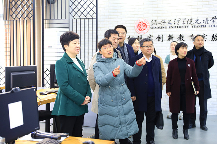 在纺织服装与艺术设计分院,王琴英一行调研指导虚拟现实创新教育实验中心和智能制造实训室。