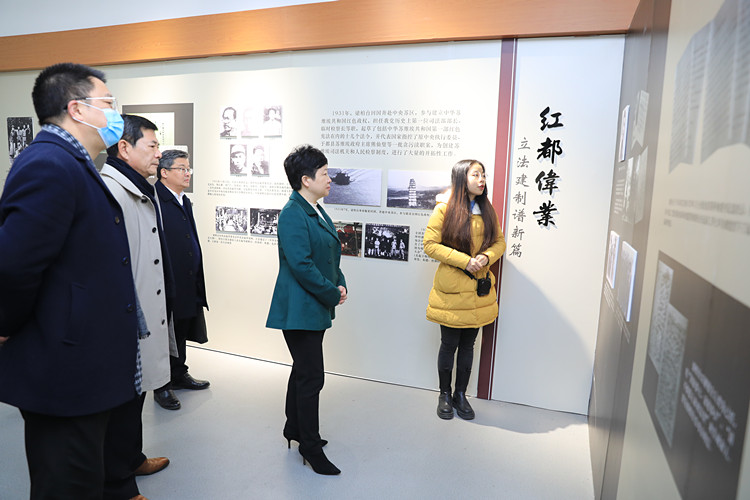 在梁柏台法学院,王琴英一行详细了解法学院成立的背景,参观梁柏台事迹展。