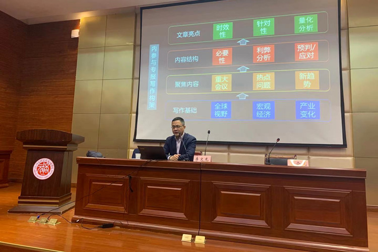 围绕如何在新形势新阶段下撰写政府内参与专报,李文龙博士总结回顾了研究院成立以来联合图胜科技与元培教师等完成的多项研究成果,成果的形式包括中央13篇内参、省级内参2篇、市级内参2篇、国家级与全国性媒体发表文章15篇、国家级与省级刊物发表论文7篇、外交部与财政部课题2项等,并从写作基础、聚焦内容、内参结构、专报亮点四个方面具体展开细致阐述,以高屋建瓴的国际视野剖析解读如何深入、精准、及时协助中央及省市决策者及时了解真实的经济动态和社会走向,制定相应的方针政策,助力政府治理精准施策,从而实现事半功倍的成效。