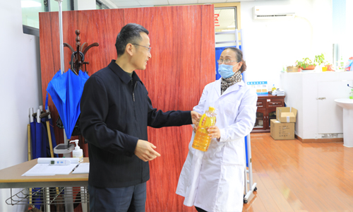 每到一处,学院领导都与在岗教职员工亲切交谈,叮嘱他们要安排好假期的工作和生活,并逐一为大家送上新春慰问品。同时,要求各相关单位要毫不松懈做好校园疫情防控工作,用心用情关爱留校工作、生活的师生,切实做好各项服务保障,并希望大家继续坚守岗位,保障寒假期间校园的安全稳定和各项工作正常运转,确保广大师生度过一个欢乐祥和的春节。