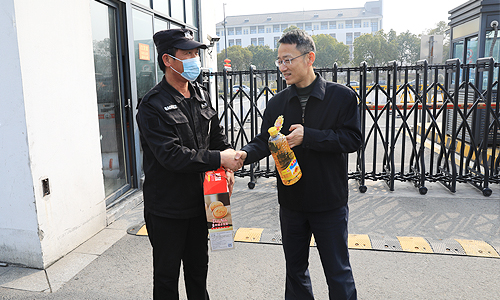 学院领导一行先后走访了保卫处消控中心,西、南大门门岗,南区高配房,医务室,员工公寓值班室,北区兴越楼餐厅等单位,看望慰问在寒假期间坚守工作岗位的教职员工,感谢他们一如既往的辛勤工作,并祝大家身体健康、新春愉快!