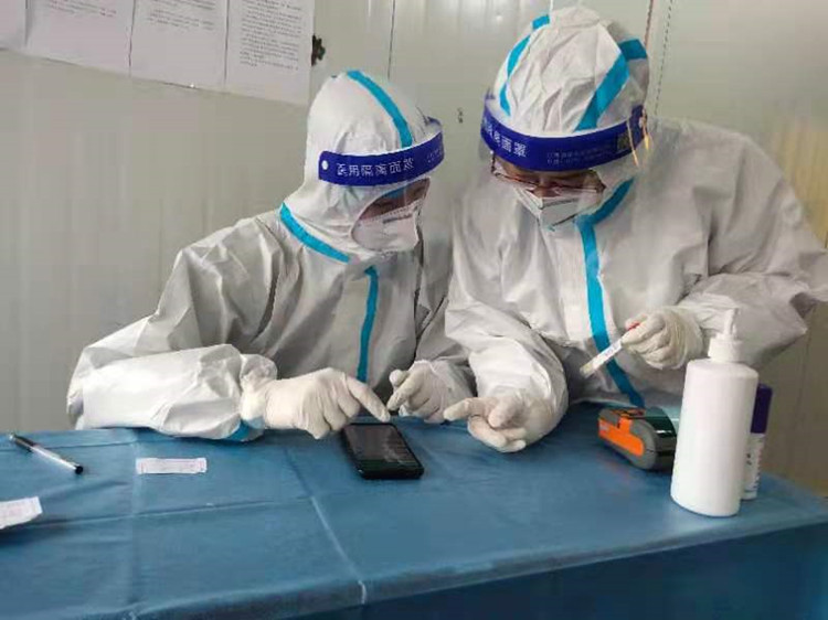 公司张宸同学(图左)疫情期间参与当地卫生服务中心核酸检测志愿服务工作