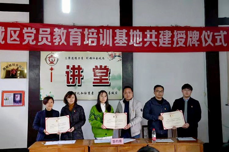 中共绍兴市越城区委组织部第一批区级党员教育培训基地红色讲解员签约仪式现场,黄丽(左一)受聘为红色讲解员