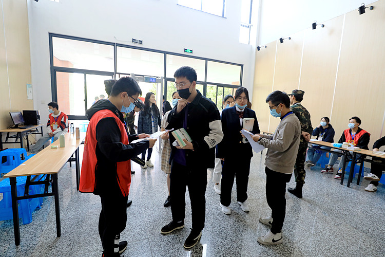 测试当天,考生在西大门排队测温、上交健康状况表后,凭“两证”入场。值得一提的是,今年学院首度使用智能人脸识别AI设备,通过身份证和刷脸现场自动比对核验考生身份,为公平考试更添一份保障。学院综合素质测试命题严格按照高考规范实行封闭命题,试卷流转以国家考试保密级别标准化管理。面试实行“多随机,双确认”模式,同时,面试区域设置了测温安检门,配备了金属探测仪和信号屏蔽仪,整个综合素质测试全程录音录像,确保综合素质测试工作在阳光下进行。