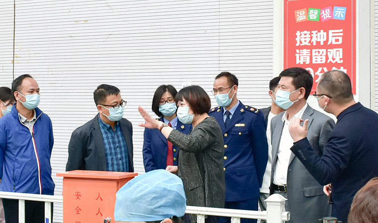 绍兴市市场监管局局长王永明、市疾控中心副主任傅利军一行实地走访和检查指导了疫苗接种工作