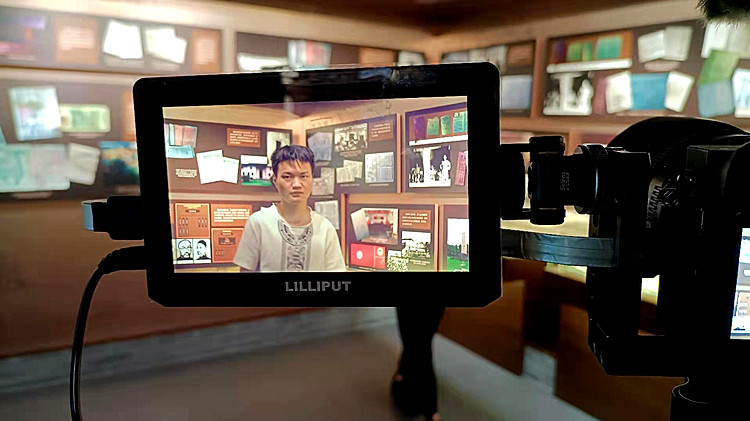 摄制团队到绍兴市检察院梁柏台烈士生平事迹史料陈列室进行现场拍摄