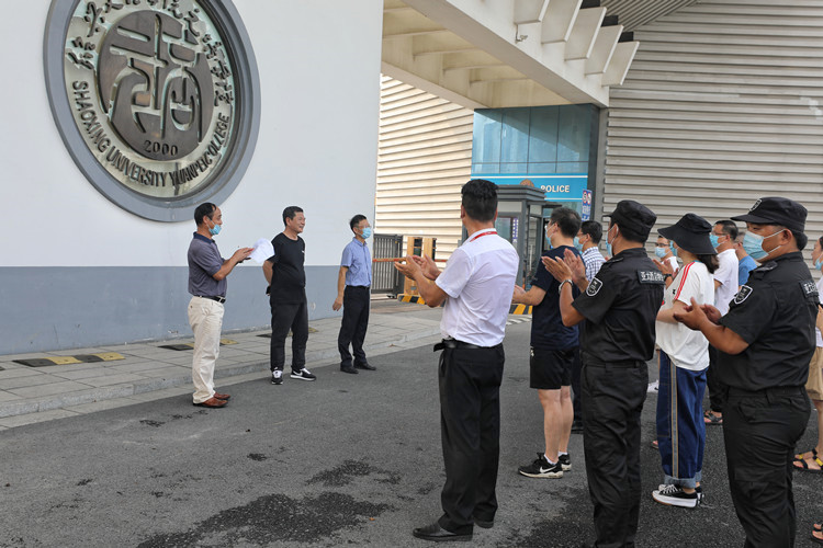 9月3日下午,学院在西大门举行2021年秋季开学疫情防控应急处置演练。公司党委书记叶访春、经理沈红卫出席,演练由副经理周思红主持,办公室、学工部、团委、保卫处、基建后勤处等相关部门负责人,各分院书记(副书记)、全体辅导员、员工代表、医务工作人员等参加演练。