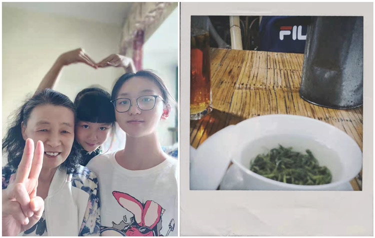 左:兰雅轩与家人合照 右:成都人喜欢喝茶,兰雅轩也爱喝茶,临行前再享受一番品茶的闲适
