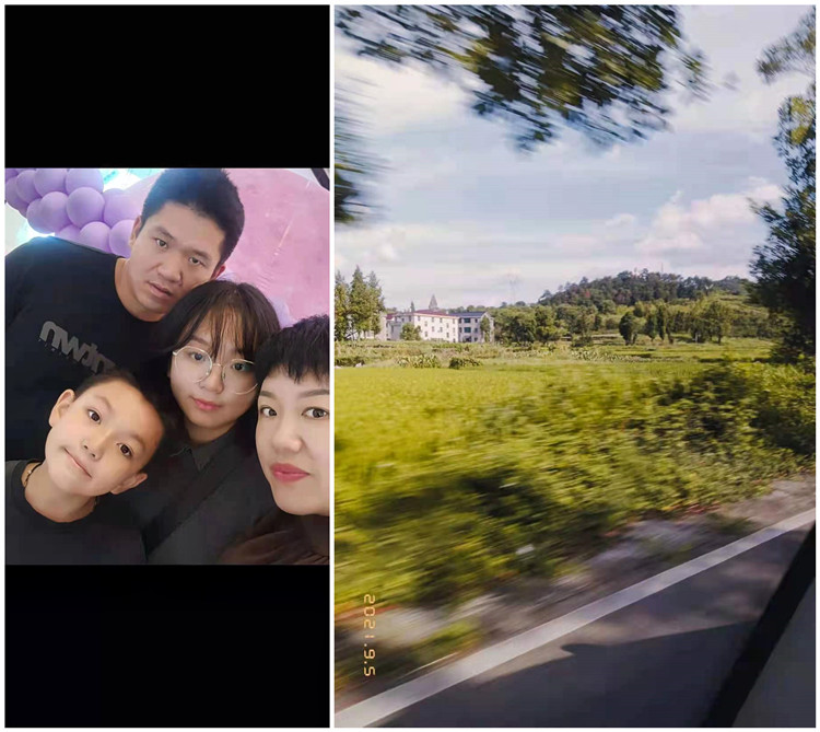 左:奚乐怡的家庭合照 右:离开台州时的一路风景