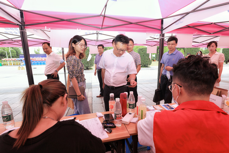 “同学们在吃饭了,慢慢吃,大家辛苦了!”正值中午,校领导汪俊昌、陈均土径直来到迎新现场,亲切看望忙碌之余正在吃饭的迎新工作人员和员工志愿者,向他们表示关心与问候。在各分院报到点,汪俊昌向分院有关负责人详细了解新生报到情况和迎新各项工作落实情况,与迎新一线的师生和志愿者进行亲切交谈,对大家的辛勤工作给予充分认可和赞赏。随后,汪俊昌一行来到学院西大门,走访检查了开学疫情防控工作部署落实和新生报到情况,对学院开学工作的平稳有序给予肯定。