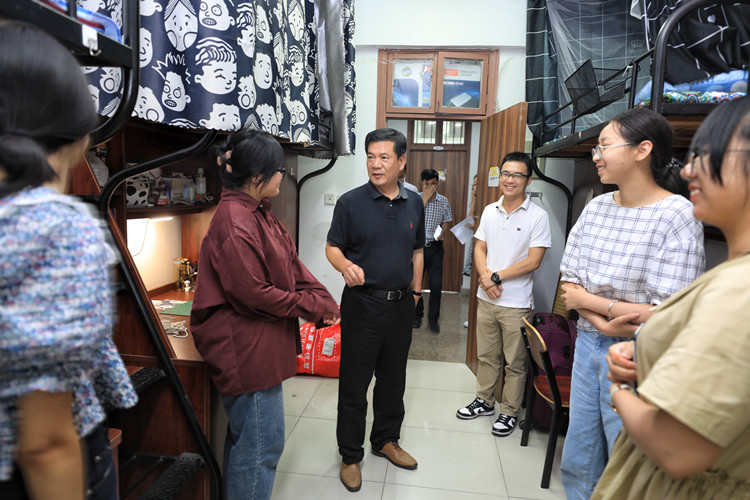 9月7-8日是学院2021级新生开学报到的日子。连日来,叶访春、沈红卫等学院领导先后赴迎新工作现场、校外迎新接站服务点、新生寝室看望2021级新生,慰问迎新工作人员和员工志愿者。深切的慰问和言语的关怀,为奋战在各个岗位上的工作人员和新生们送来了清凉。