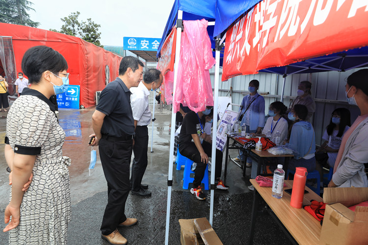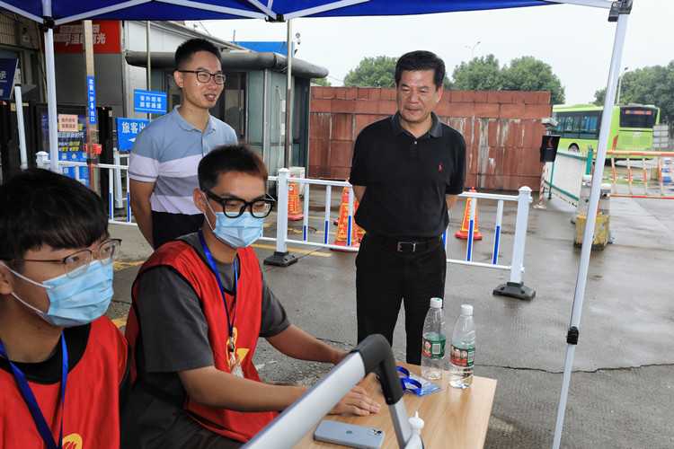 9月7日上午,在西大门和迎新工作现场,院领导们认真察看了进校疫情防控部署落实情况、医疗服务点、家长饮水区、校内迎新接待点、绿色通道办理处等地,与迎新工作人员和志愿者亲切交谈,听取迎新工作情况汇报,详细了解新生报到情况和迎新工作进度,向坚守在迎新工作一线的各分院经理、书记、辅导员、班主任、班助、员工志愿者等表示感谢,对学院开学疫情防控工作和迎新工作给予肯定。