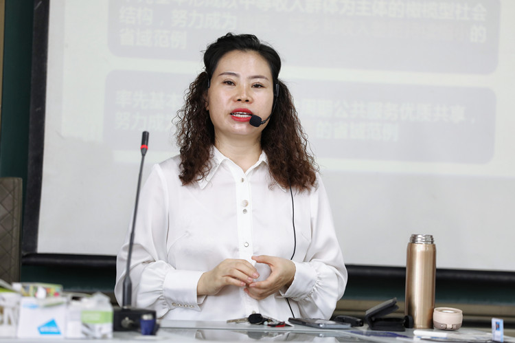 袁海平教授从“共同富裕为什么从‘浙’走起”“‘浙’里有模有样”“未来‘浙’里的共同富裕这么做”等方面展开宣讲。“山海协作,奏响浙江共同富裕幸福歌”,青年宣讲员孙袁向同学们分享了习近平总书记在浙江时提出以“山海协作”推动浙江共同富裕的故事。“‘浙’样干,我看‘兴’”,王玉瑶宣讲员分享了共同富裕在浙江落地和示范建设在绍兴推进的成果。此外,宣讲团其他教授、博士以及员工宣讲员还就“共同富裕——中国式现代化新道路”“共同富裕的思与辨”“从三次分配到共同富裕”等方面的主题作了宣讲。