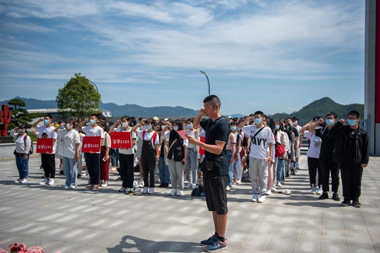 “同学们,你们了解我们国家的宪法吗,懂得哪些宪法知识?今天,我将为大家现场讲授《宪法学》基础知识。”9月24日,在新昌县梁柏台红色学习基地宪法广场,学院梁柏台法学院副经理陈金东结合梁柏台先生爱国使命、司法实践的红色故事,为法学院2021级全体新生带来了一场别具特色的现场讲课。这是自学院梁柏台法学院成立以来,首次把法学专业新生“开学第一课”搬到了梁柏台红色教育基地。