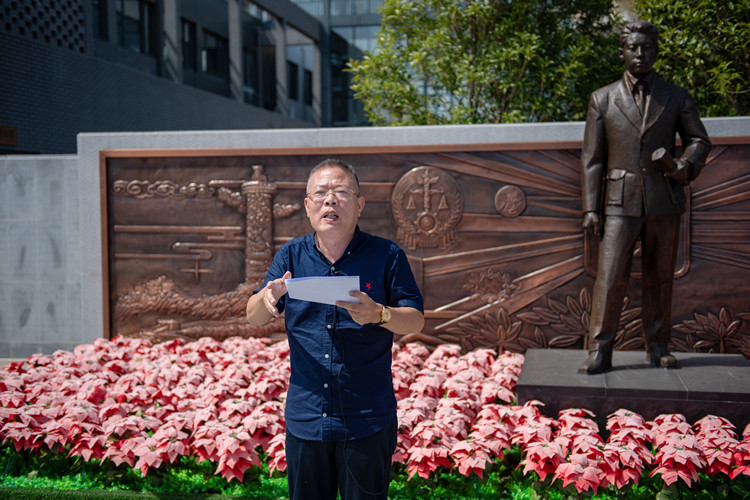 “勤奋学习,进德修业;志存高远,开拓创新;弘扬革命精神,传承红色基因;挥法律之利剑,持正义之天平;立志为社会主义法治事业奋斗终身!”面对梁柏台先生雕像,全体员工激昂宣誓,立志将传承和弘扬梁柏台法治精神,成为新时代中国特色社会主义法治人才。