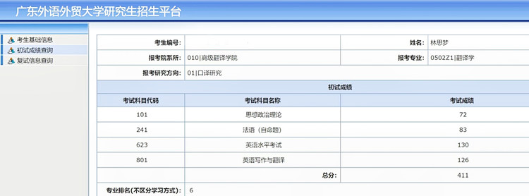 前期打下的扎实基础和积累下的丰富经验让林思梦有了些“底气”,大二时期,当别人还在迷茫,她已经定下考研方向,把目光牢牢锁定在三大外国语院校之中;大三上学期,她果断决定“冲一冲”广外的高翻学院,大三下学期,她已经开启了备考的漫漫征程。