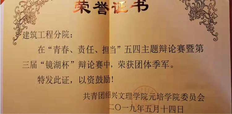赵冰燕团队荣获学院五四主题辩论赛暨第三届“镜湖杯”辩论赛季军