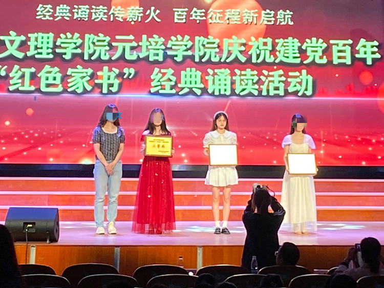 赵冰燕(右二)团队荣获学院庆祝建党百年“红色家书”经典诵读活动二等奖
