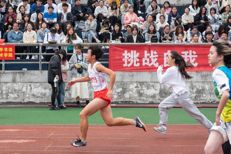 运动精神,薪火相继。长跑运动员、老将郑慧在本届校运会女子1500米和3000米比赛中斩获2枚金牌,并在1500米项目中以5分58秒43的成绩获得了突破。6分钟对于郑慧来说是一道坎,从6分钟以外到6分钟以内,是去年秋天到今年秋天长达一年刻苦训练的成果,也给郑慧未来参加省赛增加了更大的信心。此外,像郑慧一样比赛经验丰富的老将不在少数,万伟国、郑超丞、陈周勇等“明星”运动员也均斩获径赛项目金牌,实力领跑优势径赛项目。