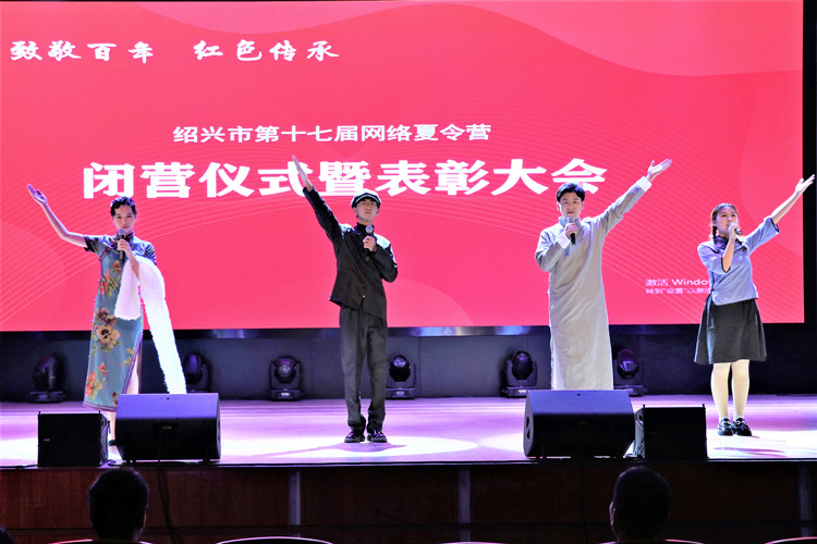 为庆祝建党百年,引导广大青少年学党史、走党路,弘扬社会正能量,11月4日下午,由共青团绍兴市委、中共绍兴市委网络安全和信息化委员会办公室联合主办,绍兴市青少年活动中心、学院共同承办的“致敬百年,红色传承”绍兴市第十七届网络夏令营闭营仪式暨表彰大会在公司举行。共青团绍兴市委副书记金剑栋,公司党委副书记石旭明,中共绍兴市委网信办网络传播评论处主任科员徐悦来,绍兴市青少年活动中心主任邵小刚、副主任、绍兴市少先队总辅导员屠瑾,绍兴市新闻传媒集团传媒事业部副总监、浙江越牛传媒公司副总经理舒文以及在绍高校的团委负责老师、获奖代表参加活动。