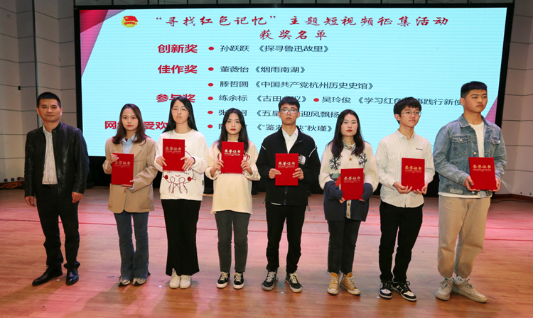 绍兴市青少年活动中心主任邵小刚为“寻找红色记忆”主题短视频比赛获奖者颁奖