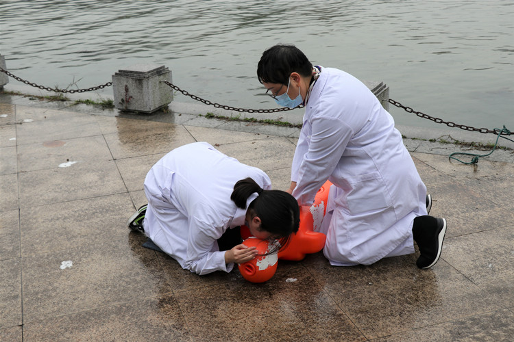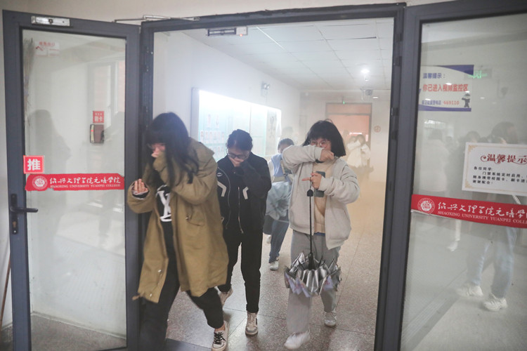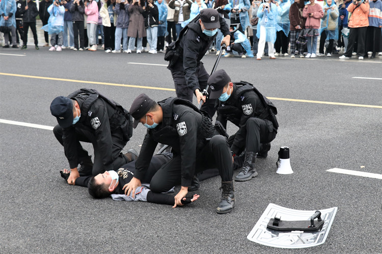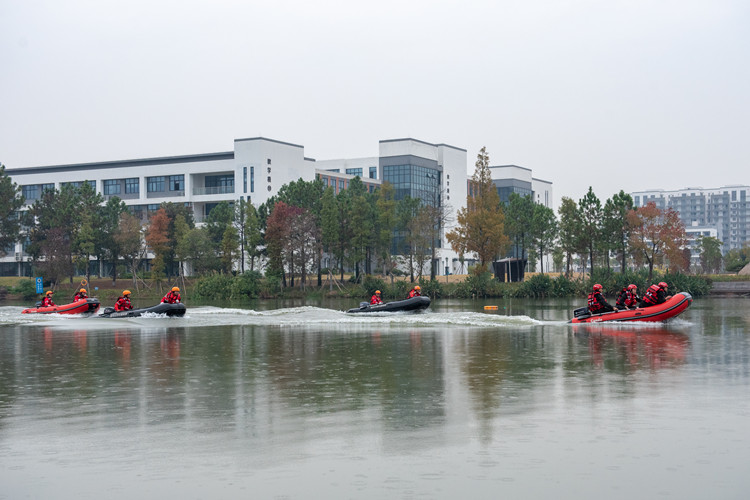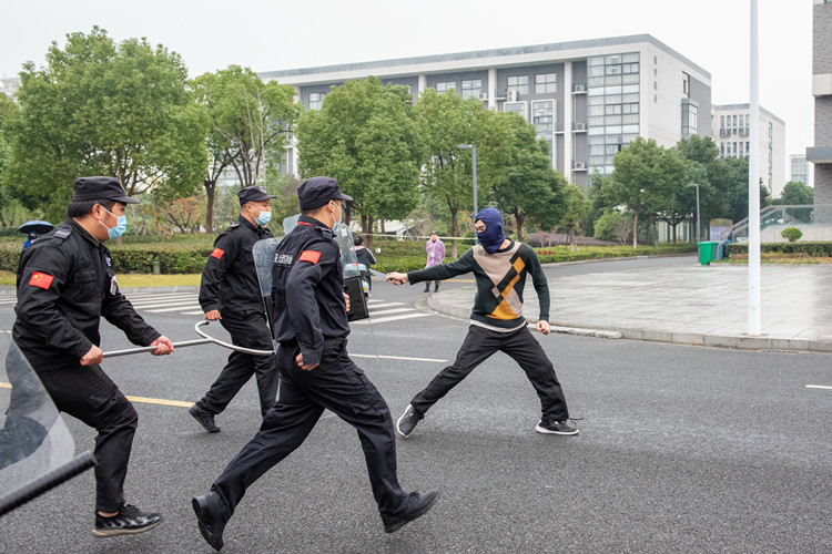 本次演练由三个不同场景突发事件的模拟演练组成。在元培大道设置的反恐防暴应急处置演练,分别模拟了可疑人员手持匕首使用假码冲进校园和可疑人员在图书馆怒持匕首挟持员工威胁的两种场景,学院保卫人员立即拨打校园“110”报警,并手持防暴器械与可疑人员进行周旋;在蝶恋园码头设置的员工落水应急救援演练,以假人投放模拟员工突发落水情况,巡逻保安及巡特警快艇立即进行救援,经医务室人员现场救护后紧急送往医院;在南区员工公寓设置的公寓火灾应急疏散演练,模拟火灾现场,员工有序撤离至公寓楼下,保卫人员及志愿消防员第一时间赶赴现场处置进行灭火救援,同时拨打“119”向消防部门报警。