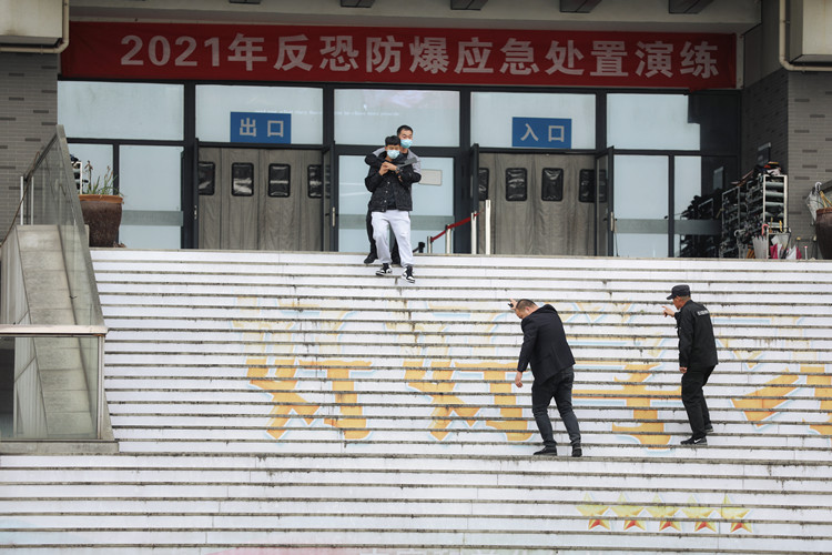 俞军对反恐防暴应急处置演练作总结点评,对此次突发事件应急处置综合演练给予充分肯定,并就进一步提升突发事件应急处置能力提出三点建议:一是要牢记树立安全意识,以最大限度避免不必要的伤害,减少不必要的损失;二是要多学习掌握应急防卫、自我保护的知识和本领,在面对突发事件时保持头脑冷静、沉着应对;三是要经常性地开展贴近实战的应急处置演练,从中发现问题,弥补缺陷。张李彬对消防演练作总结点评,代表绍兴消防向参加这次活动的全体师生表示衷心的感谢,希望同学们牢记消防安全注意事项,加强消防安全知识学习,提高消防安全意识,保障生命财产的安全。