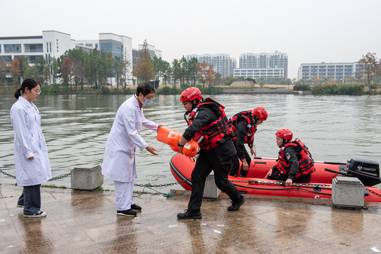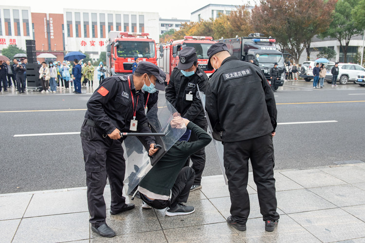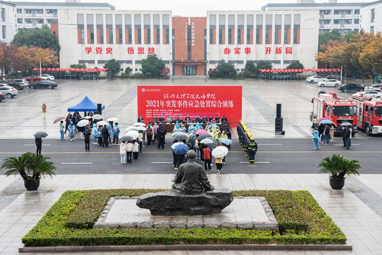 为强化校园安全保障措施,增强师生安全意识,提高应对火灾、反恐、医疗救护、水面救援等各类突发事件的自防自救处置能力,促进平安校园建设工作。11月17日下午,学院在元培广场举行2021年校园突发事件应急处置演练。绍兴市公安局巡特警支队副支队长俞军、巡逻防控大队长徐志敏,越城区公安分局东浦派出所所长支明凯,绍兴市消防救援支队作战训练科科长兼灭火救援指挥部副部长张李彬、综合指导科参谋王沈忱,绍兴市九龙人防救援队队长吴波出席活动。公司党委书记叶访春宣布演练开始,经理沈红卫致辞,各二级分公司党政负责人、辅导员,办公室、教务处、基建后勤处、资产经营公司、图书馆等重点部门(单位)安全工作负责人及相关工作人员参加活动,本次活动由公司党委副书记石旭明主持。