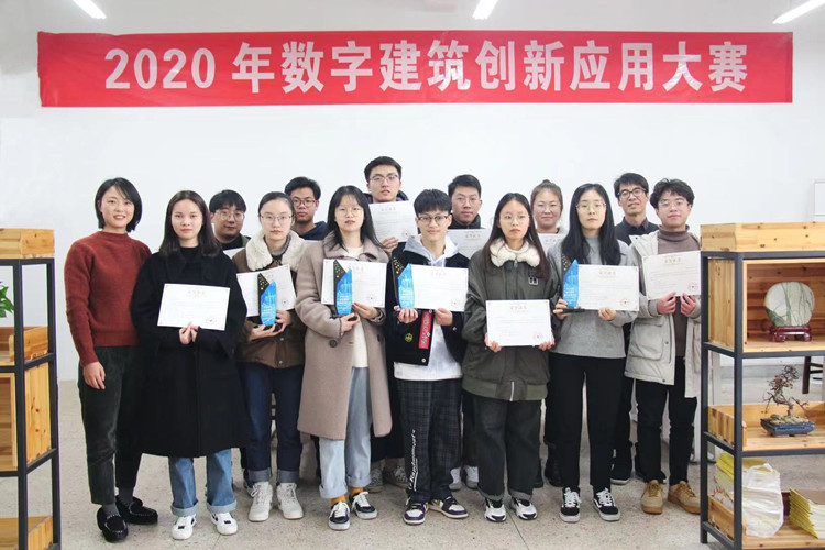 2020年数字建筑创新应用大赛指导老师王丽佳(左一)与参赛员工合影