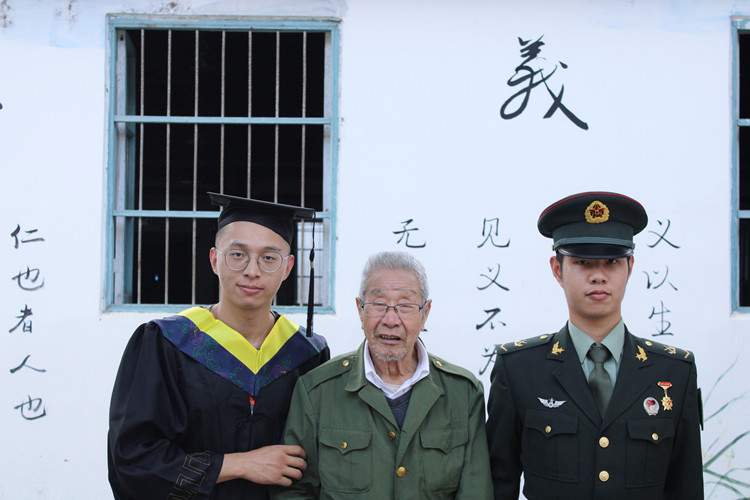 有关童年,翁俊峰记忆最深的就是趴在外公的腿上,听外公讲述年轻时自己在抗战一线的故事和当年的热血青春,看着外公时不时拿起身旁装裱完整的黑白照片,擦了又擦。“那是外公身穿军装的照片,特别帅。他很珍爱,每天都会取下来擦拭一番。”翁俊峰回忆道,在外公的耳濡目染熏陶下,他从小在心里埋下了一颗有关军人梦的种子。