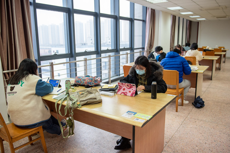 “从明天起进行线上授课,请同学们做好准备,提前五分钟在群里签到。”寝室里,同学们对着电脑端坐,隔着屏幕互动。直播课上,教师们利用直播平台进行课堂回放、上传PPT等线上教学资料、在线讨论答疑、布置线上作业或测试,通过精心的备课辅以多种方式加强员工的学业辅导,以行动践行“上好每一堂课”的理念,为员工带来与线下教学同质等效的线上教学。图书馆内,考研学子埋首书本与知识酣战,每日雷打不动地来图书馆“报到”,待到闭馆时才回寝;英语四六级考试临近,图书馆走廊上“Current”“Virtually”的读音此起彼伏,隔了一层口罩的声音依旧响亮。