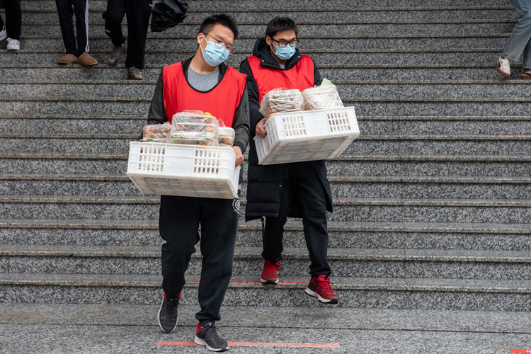 “9幢已送完”“4幢已送完”,员工志愿者群里,同学们正报送着各自的送餐完成进度。校园抗疫工作初始,员工志愿者团队便默默上岗,秉持“有需必达,有求必应”的服务理念,不仅每日准时从食堂搬来热腾腾的饭菜,在临近考研、四六级考试的特殊时期,还提供不少打印店打印证件、送考试资料等“送货上门”的暖心服务,在抗击疫情的工作中展现着元培青年的担当。一份来自校园督察队的30余名老员工退伍军人抗疫工作请战书,近日在校园内“刷屏”,一句“需要体现战士精神的时候到了”在队伍中响起,他们一呼百应,主动请愿加入到学院的防疫工作,时刻准备为学院贡献自己的一份力量。
