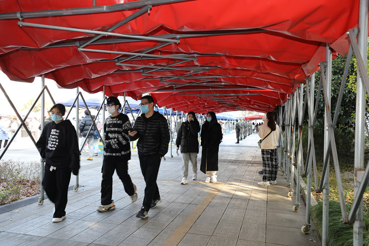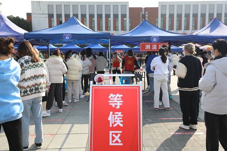 “疫情发生得很突然,但学校对我们很关心,准备也很充分,让我觉得很安心。”护理学2003董洁婷说道,同时她也“喊话”在上虞的父母,让他们不要担心。“我是第一次做核酸检测,本来有些紧张,但是现场的志愿者和医护人员都很细心,整个过程非常顺利。”中语2101班的索子钰说。