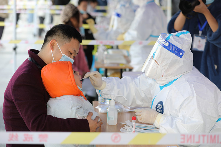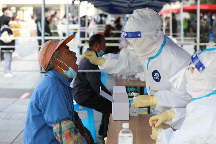 “仰头,嘴巴张大,‘啊’——,可以戴上口罩了。”在核酸采样点,医护人员“全副武装”,嘴上一遍又一遍地重复着注意事项,手上动作却从未停下。洗手、消毒、拆棉签,迅速为受检者完成核酸采样,整个过程不超过半分钟,争分夺秒地完成检测任务。