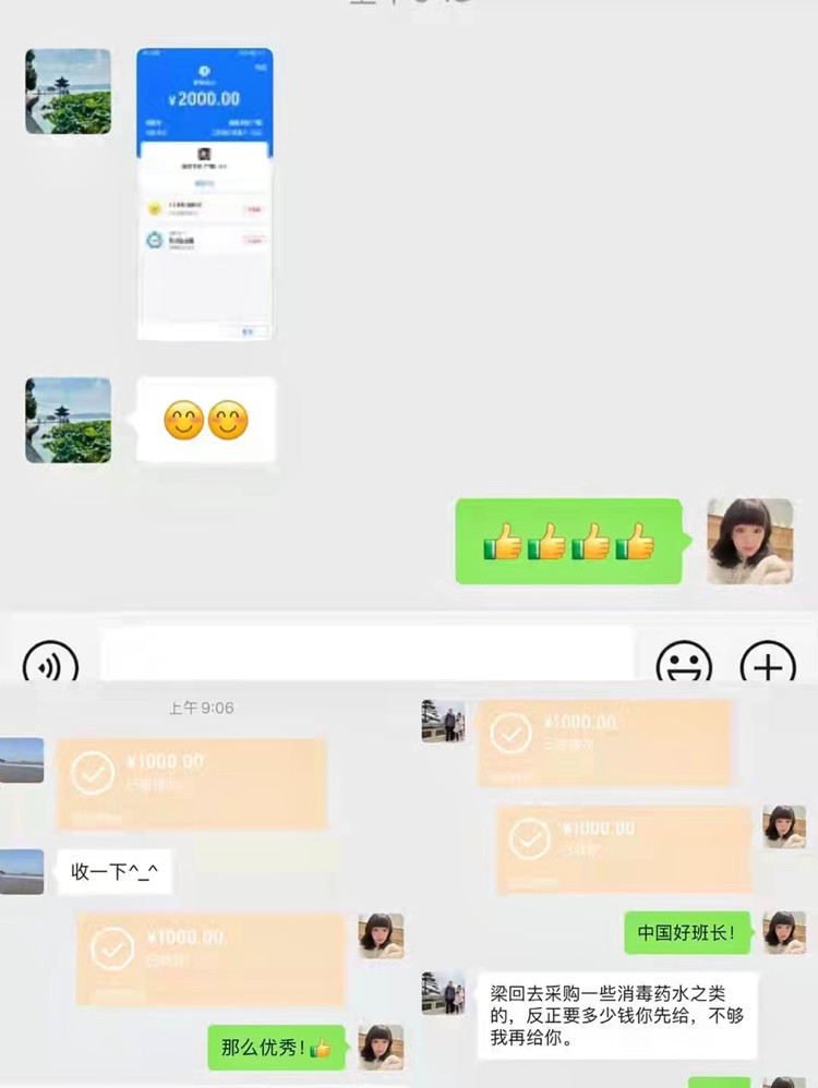 “我带头先捐!”“支持!”“消毒水、口罩都需要吧?”群内的一句句鼓励,一声声关心持续传递。巴富民负责组织调配,承雯雯负责收集捐款资金,再联系疫区当地同学进行捐赠或物资采购,联络交通运输……环环相扣,心心相牵,广大员工自发地通过各种方式和渠道,助力抗击疫情。据悉,此次募捐仍在开展阶段,目前已收到部分员工捐款,后续将联络疫区村委会进行直接捐赠或用于口罩、消毒水、体温计等易耗品的采买。杜轶君看着一条条暖心的消息,特别感慨:“毕业这么多年了,他们能主动地去关心同学以及学院的老师,并且有越来越多的员工设法来帮助大家,这份情谊让人十分感动。”