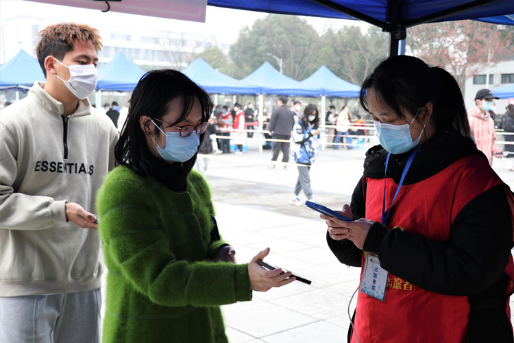 “第一次做检测,有未知的恐惧,后来明白不过是棉签在喉咙口滑动几下,已经不会大惊小怪。很感谢学院能周密部署,用行动保障我们的健康。”汉语言2001班的金高洁同学说。继一次检测后,二次核酸检测又在元培人的朋友圈“火”了一把,一张张核酸检测现场照片,是对学院防疫工作的支持与感恩。“大家都很自觉,很配合工作,这次只要我们稍加提示即可,比起上一次更快更好。”志愿者王紫伊告诉记者。