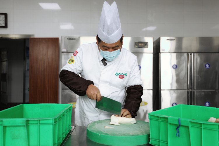 秒成分,分成时,时成日,若干年后,祝吉根以优秀学员的荣誉称号,顺利从培训班“毕业”,进入绍兴师范专科学校食堂工作。不同于培训班的传统训练,学校的工作量大、要求更严格,这对祝吉根来说也是不小的挑战。每个清晨,五点的校园还弥漫着睡意,他早已投入灯火通明的操作间里开启了一天的忙碌,站在灶台前,熟练地将蔬菜、鱼、肉等食材分类拣择、清洗、切配,在面点间用力地揉、捏、搓面、拌馅,手工制作着精致美味的包子,一天工作时间长达十几个小时,可他脸上总是带着笑容:“每天饭点看着这么多员工在食堂排队打饭,心里的辛苦都被治愈了。我就是个普通人,能让员工们吃好就是我最大的心愿。”